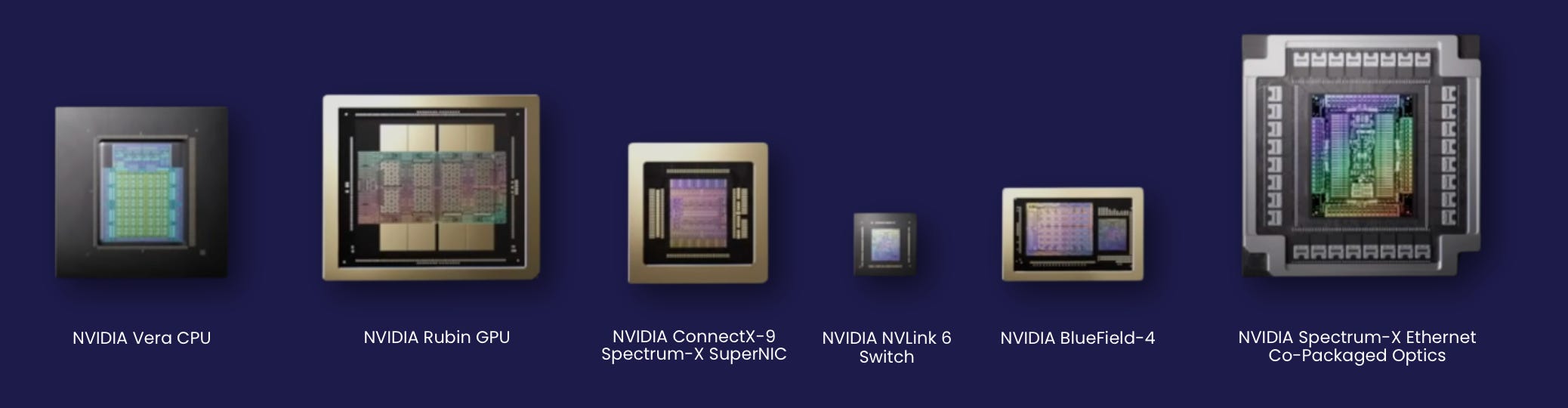 NVLink 6 is part of the six‑chip Rubin platform list.